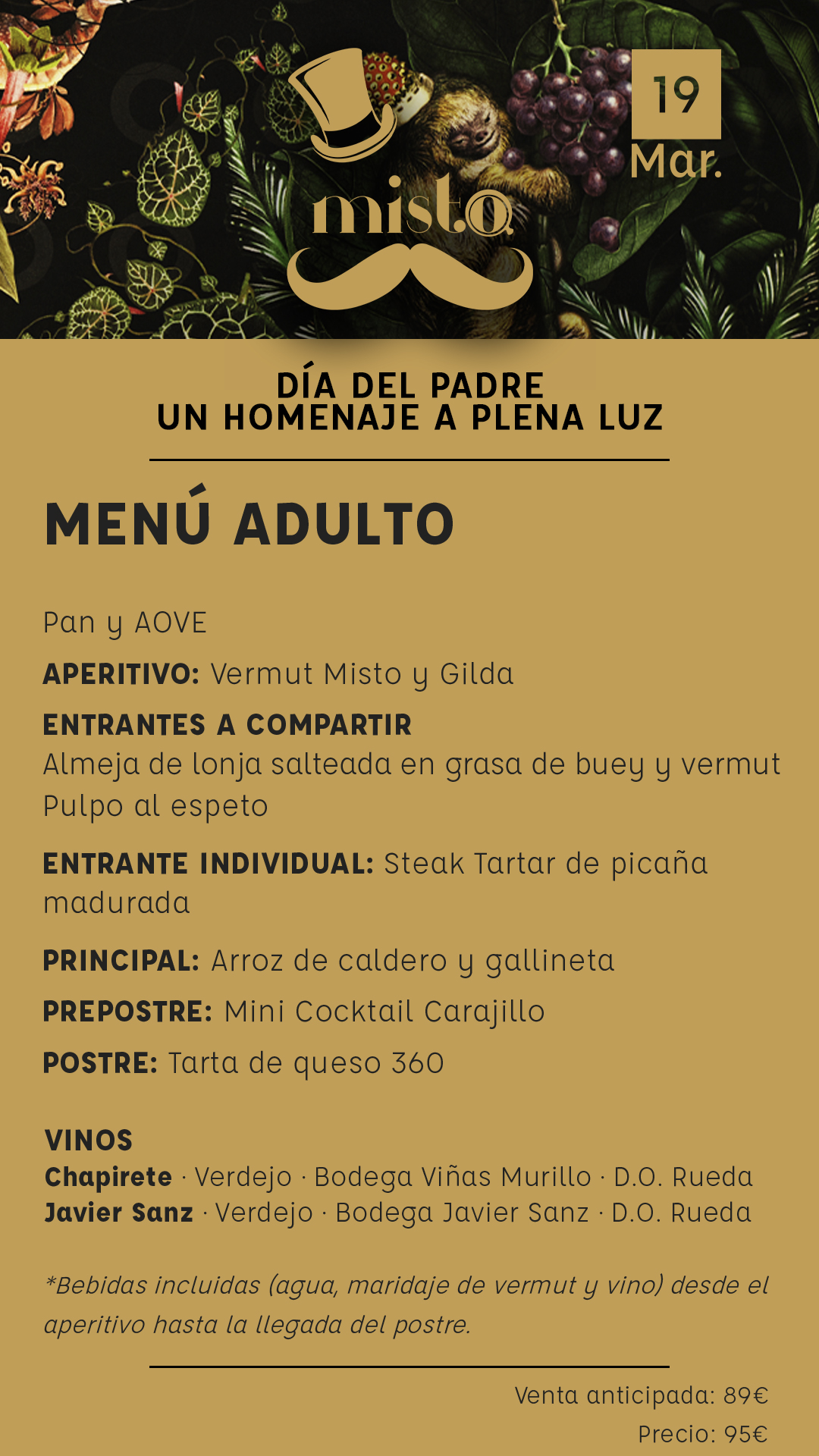 Un homenaje a plena luz Menú especial